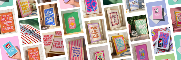 We’re all about dopamine décor, honest words and feel-good designs that bring a boost to your walls, your kitchen, or your best mate’s letterbox.